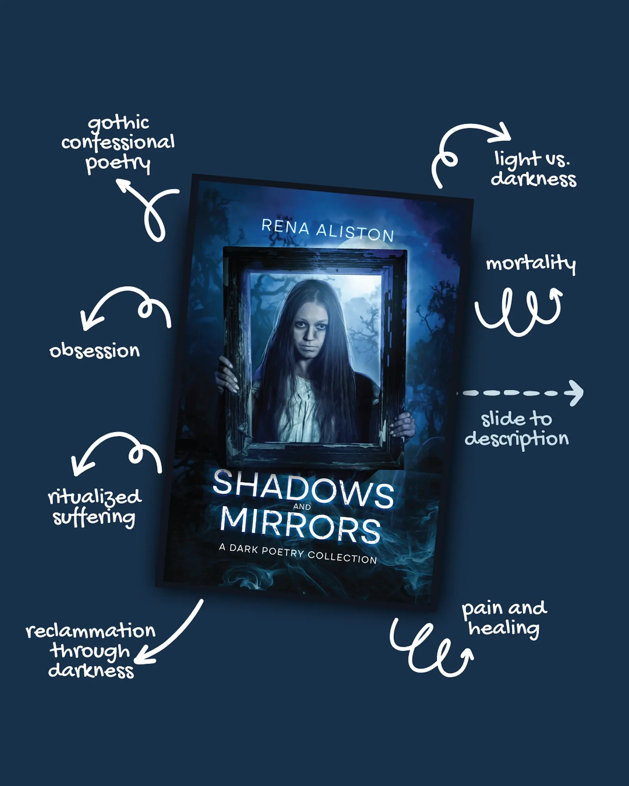 Shadows and Mirrors explores the darker aspects of the self. Life, death, love, hate, pain, and healing collide in this dark poetry collection from Rena Aliston.