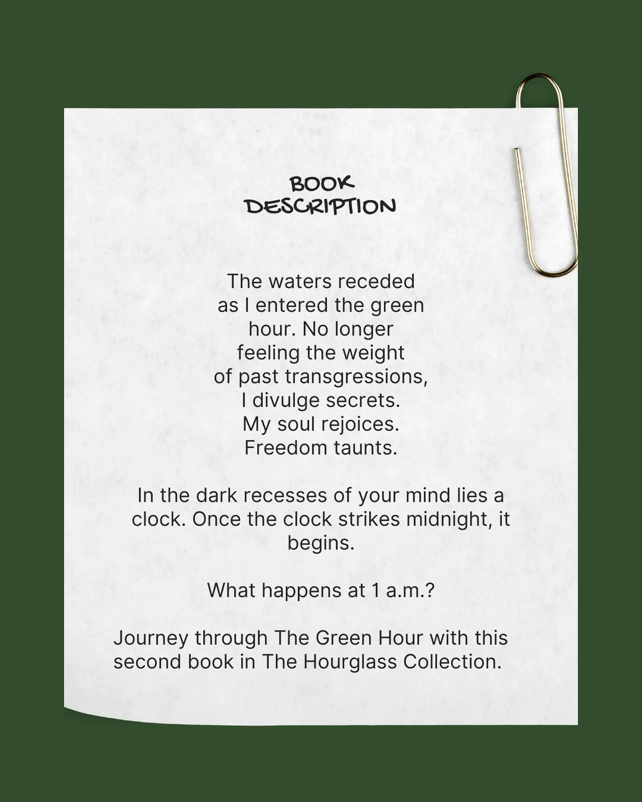 Journey through The Green Hour with this second book in The Hourglass Collection.